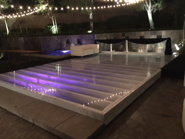 Clear Dance Floor Decking/Staging Over your Swimming Pool _ We can create a Hard Platform that can be used for Dancing——- 818-636-4104
