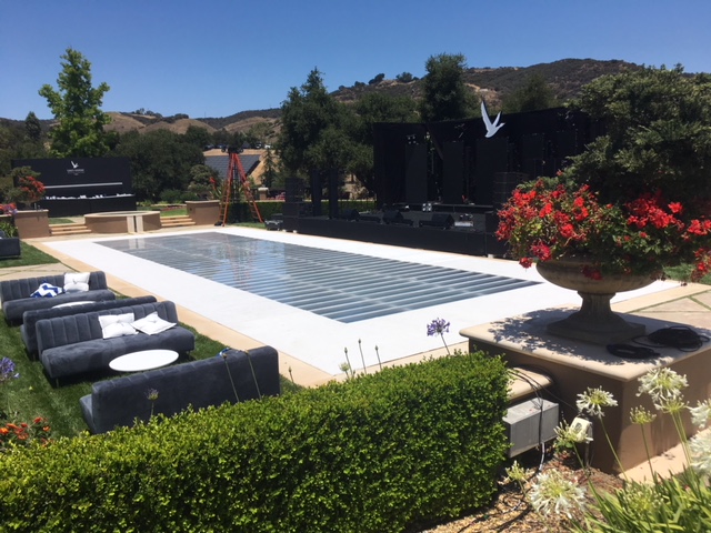 Clear Dance Floor Decking/Staging Over your Swimming Pool _ We can create a Hard Platform that can be used for Dancing——- 818-636-4104